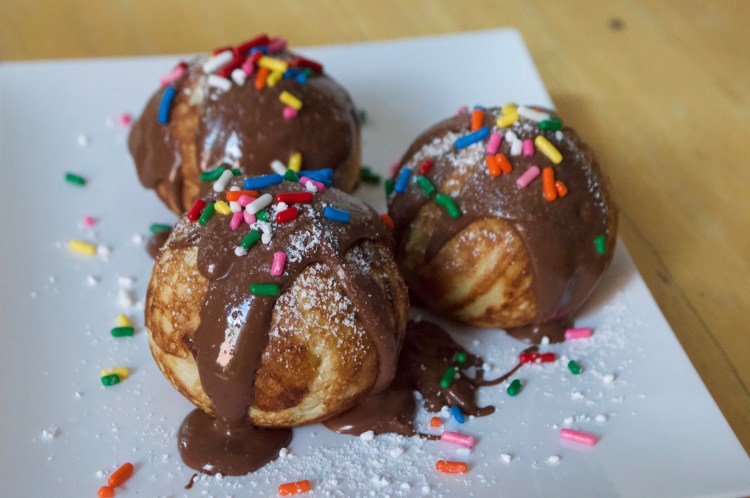 Nutella: æbleskiver topped with Nutella and sprinkles